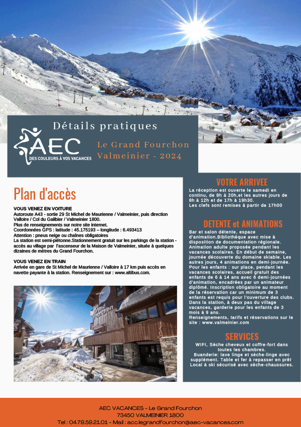 Une belle possibilité pour vos séjours à la montagne cet hiver, disponible via votre code partenaire : Le Grand Fourchon à Valmeinier 1800. .Cette destination sera bien accessible aux adhérents quand ils se connectent sur AEC Vacances avec le code 765257.