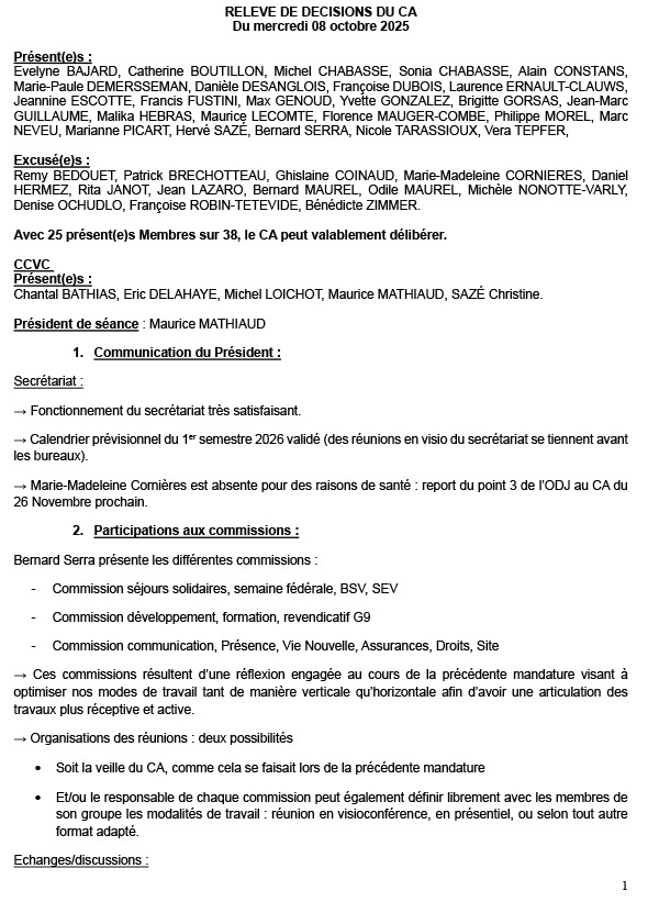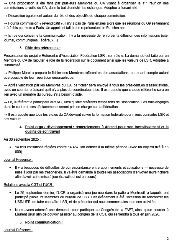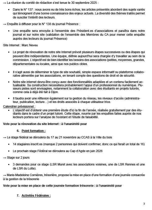 ▪ Bureau → mardi 21/10/2025 salle 4260 de 15h30 à 18h30 ▪ Bureau → mercredi 22/10/2025 salle de rédaction de 9h00 à 16h00 ▪ CA → mardi 25/11/2025 salle Frishmann de 16h00 à 18h00 ▪ CA → mercredi 26/11/2025 salle Rez-de-chaussée bas C1 de 9h00 à 16h00 ▪ Bureau → mardi 09/12/2025 salle 4260 de 15h30 à 18h30 ▪ Bureau → mercredi 10/12/2025 salle de rédaction de 9h00 à 16h00